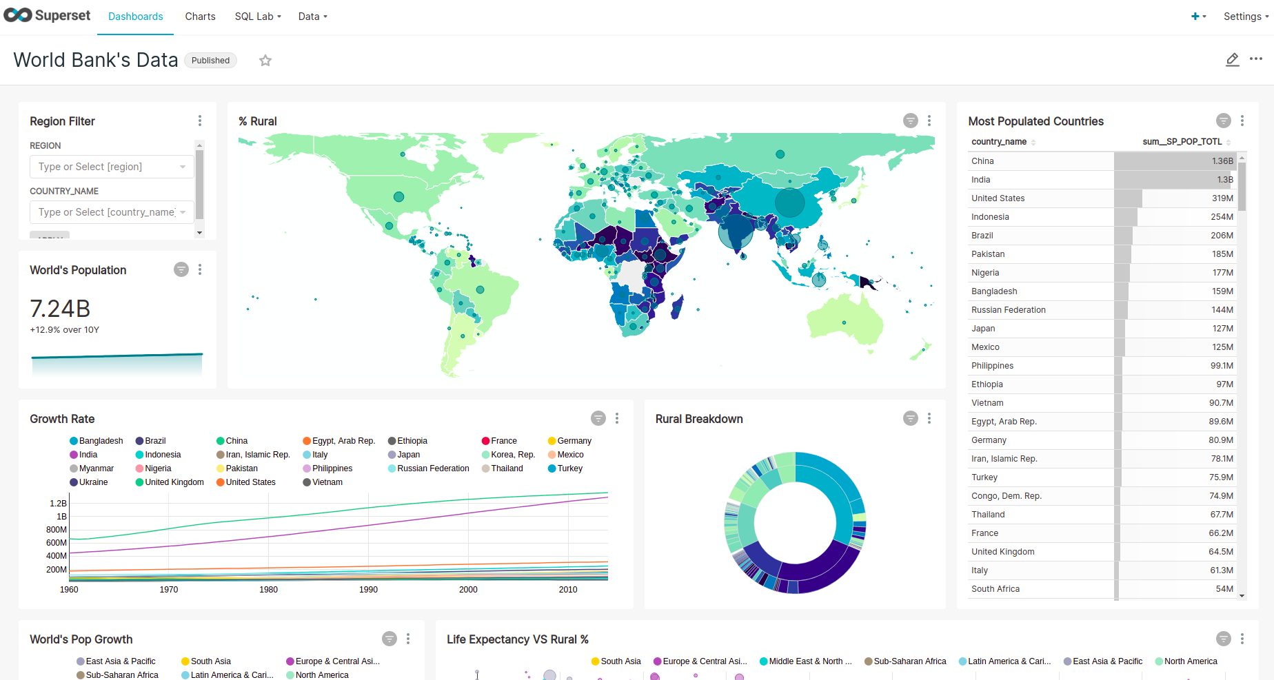 Apache Superset is fast, lightweight, intuitive, and loaded with options that make it easy for users of all skill sets to explore and visualize their data, from simple line charts to highly detailed geospatial charts.