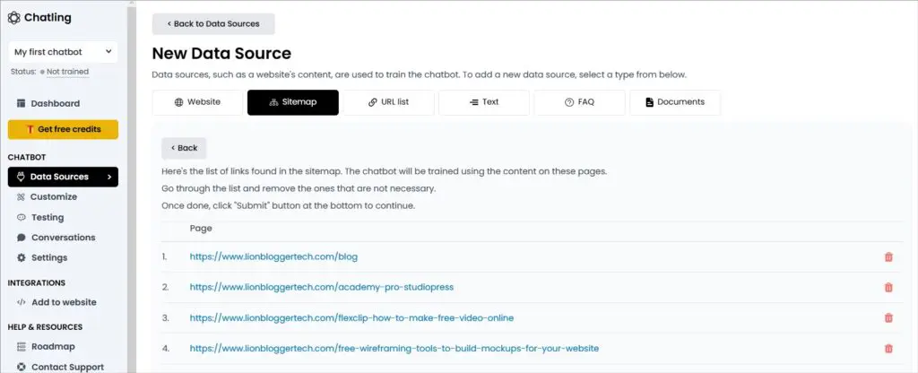 If you’re running a WordPress blog like me, you can add your blog’s sitemap. The Chatling crawler will crawl all the links in your sitemap.