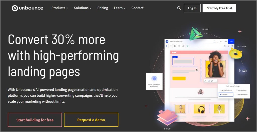 Unbounce is a landing page builder that uses AI to create high-converting landing pages. It’s perfect for those who want to create a landing page but don’t have the time or skills to build one themselves. Unbounce uses machine learning algorithms to analyze your content and create a landing page that is tailored to your needs. It also provides a drag-and-drop editor that allows you to customize your landing page further. Unbounce is not free, but it offers a 14-day free trial.