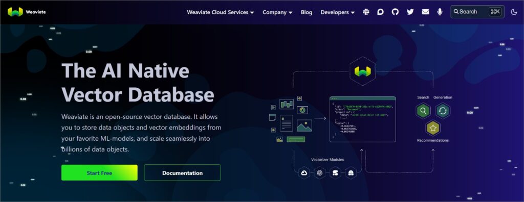 - Vector Storage and Retrieval: Weaviate specializes in storing and querying high-dimensional vectors efficiently. It supports approximate nearest neighbor search, making it suitable for real-time similarity search in large datasets.